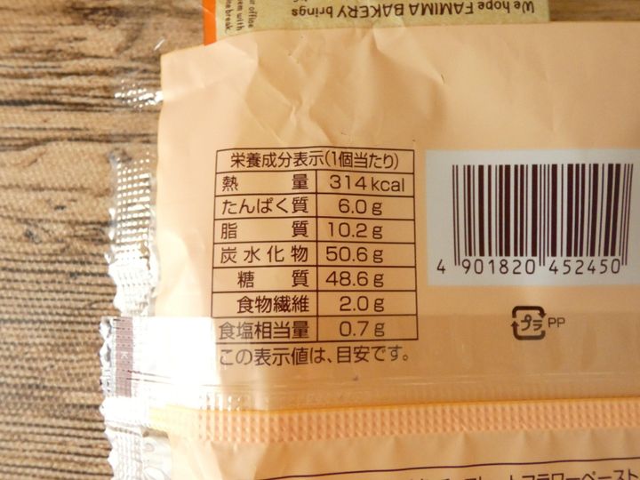 栄養成分表示を見ると1個のエネルギーは314kcal。