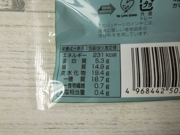 栄養成分表示を見ると1個のエネルギーは231kcal。