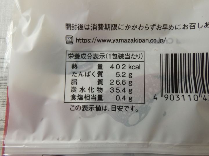 栄養成分表示を見ると1個のエネルギーは402kcal。
