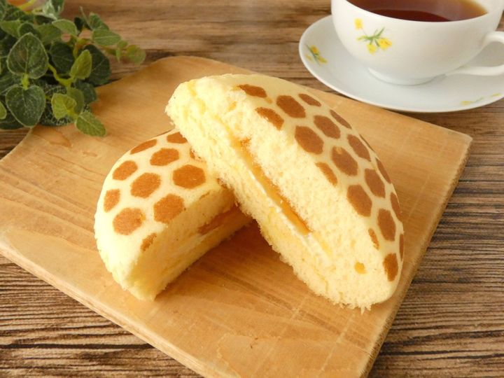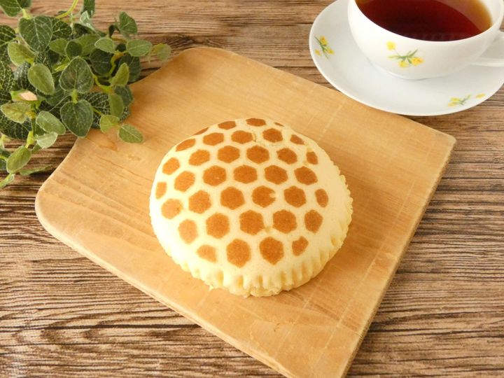 開けるとふわっと蜂蜜の香りがして、表面は蜂の巣をイメージした模様になっています。中にははちみつソースとマーガリンが挟まっています。