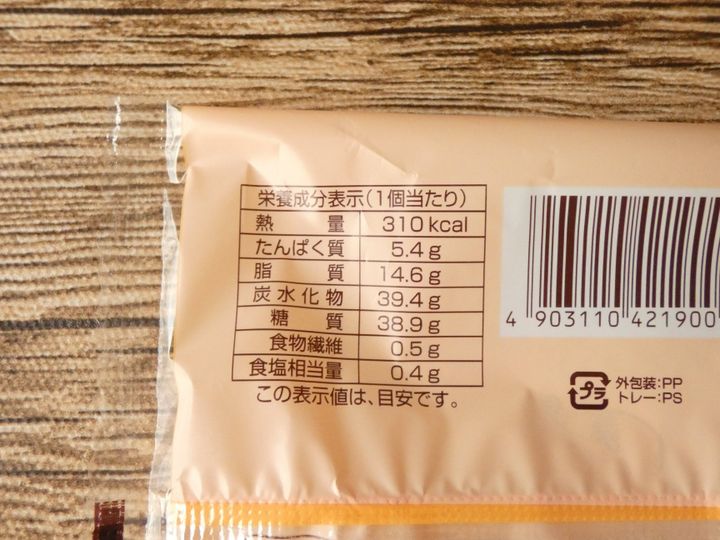 栄養成分表示を見ると1個のエネルギーは310kcal。