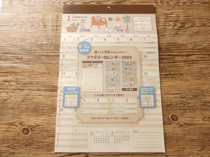 壁掛けのファミリータイプカレンダーはB4サイズ(385mm×255mm)です。