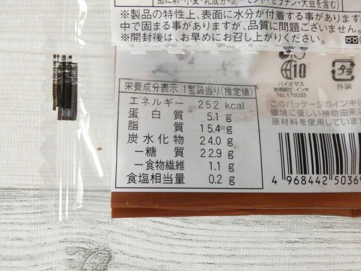 栄養成分表示を見ると1個のエネルギーは252kcal。