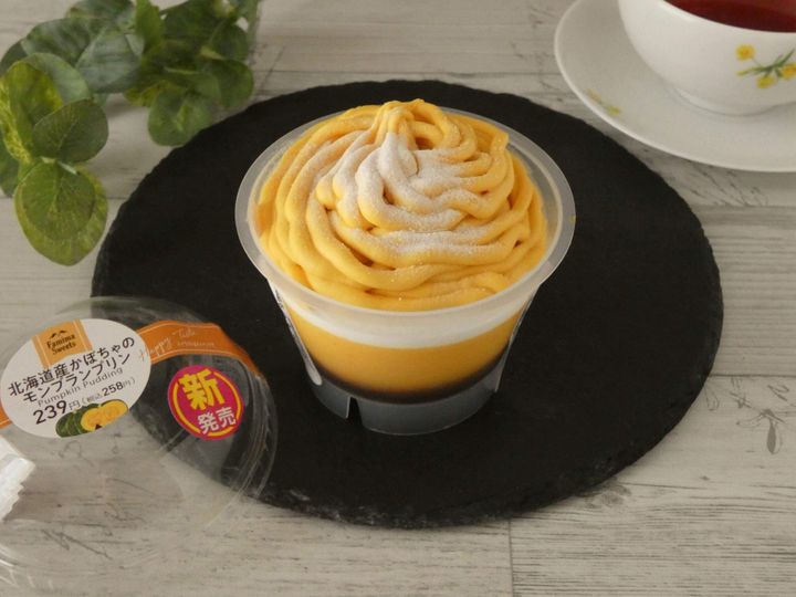 ファミリーマート新発売「北海道産かぼちゃのモンブランプリン」は258円。