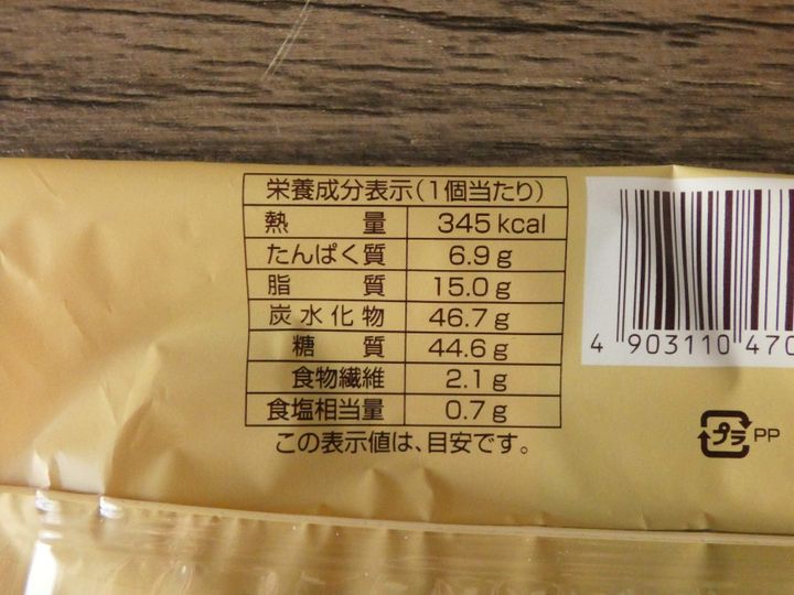 栄養成分表示を見ると1個のエネルギーは345kcal。