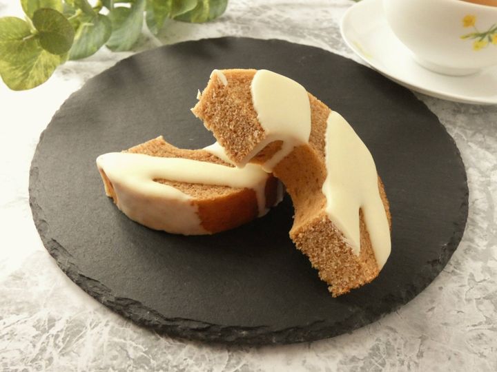 ディンブラの香りを感じられるバウムクーヘンにホワイトチョコがたっぷりかけてあります。