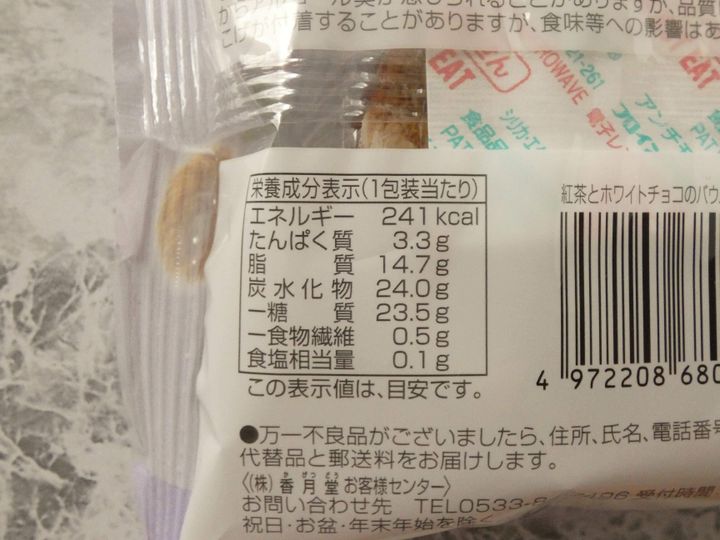 ひとくち食べるとさらに紅茶の香りが広がり、渋みなどはなくスッキリした味わいです。ホワイトチョコはコクがあり、たっぷりかかっていますが甘ったるさはなく口溶けがいいです。