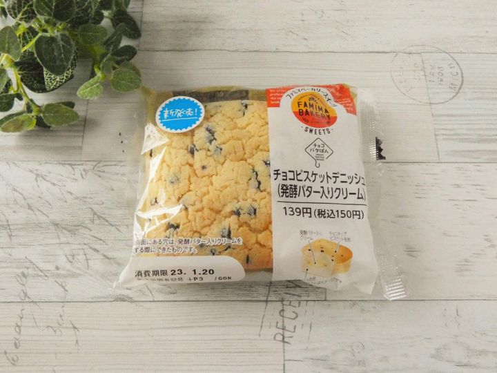 ファミリーマート新発売「チョコビスケットデニッシュ(発酵バター入りクリーム)」は150円。