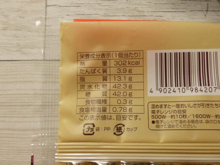 栄養成分表示を見ると1個のエネルギーは302kcal。
