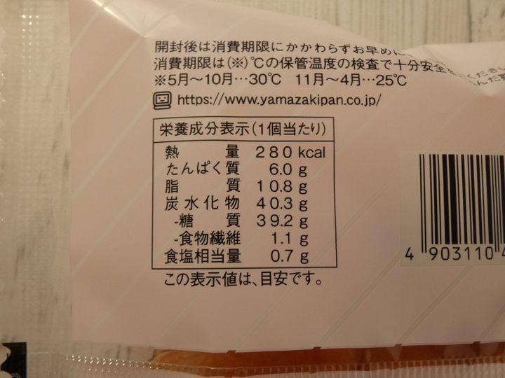 栄養成分表示を見ると1個のエネルギーは280kcalです。