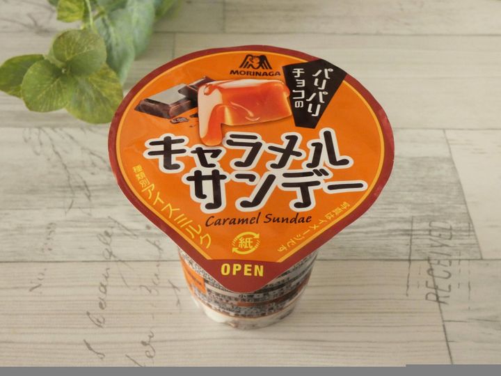 今回はファミリーマート限定発売「キャラメルサンデー」です。パリパリチョコの食感がおいしそうなので楽しみにしていました。