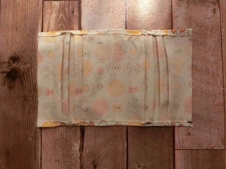 始めから縫いしろ1㎝でしっかりアイロンをかけると、縫うのは1回で済むかもしれませんが、プリーツをキレイに縫う自信がなかったので5㎜くらいの所で一度縫うことにしました。