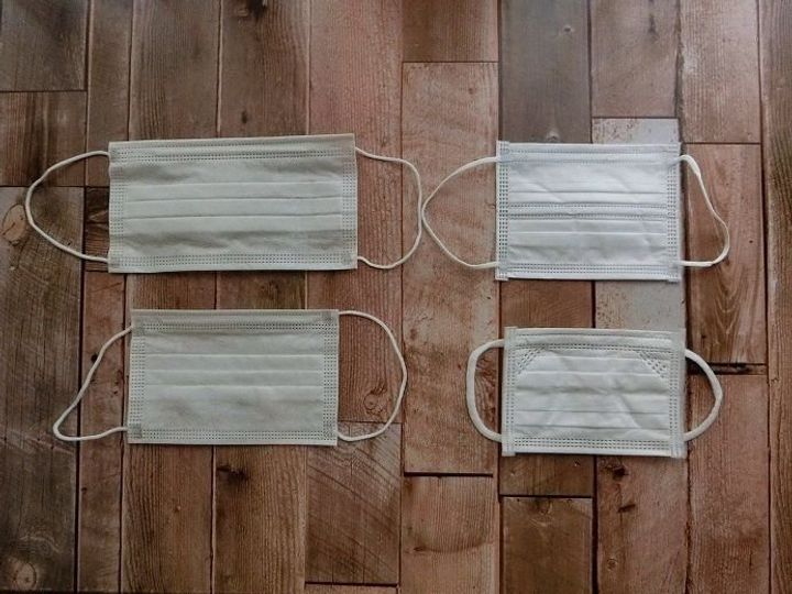 我が家にあったマスクを並べてみると、大人用、女性用、子供用と大きさはそれぞれ違い、さらに右側2枚はどちらも子供用ですが大きさが違いました。