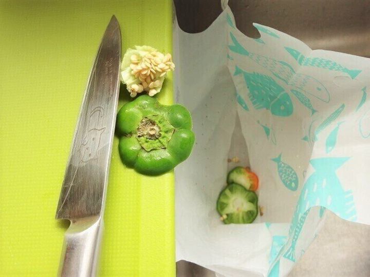 シールを貼った上にまな板を置いて作業すると、ゴミが捨てやすくて良かったです。