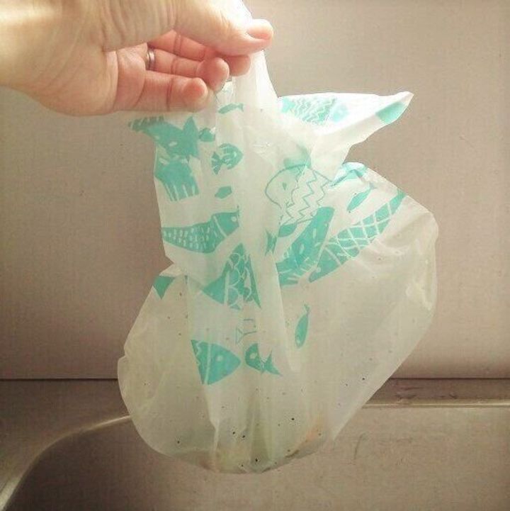 シール付きの穴あきゴミ袋で、シンクにはり付けて使うんです。使い終わったらそのまま捨てられます。