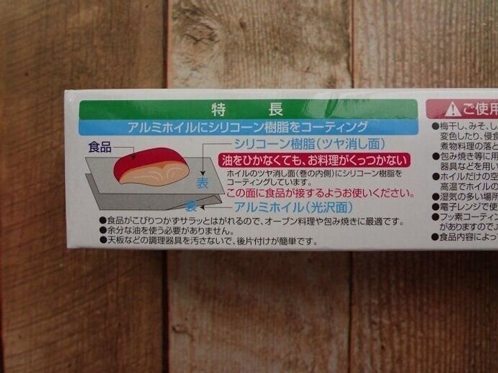 名前の通り、食品がくっつきにくいシリコーン樹脂加工をしてあり、餅を焼くときやフライパンで炒めるときにとても便利なホイルです。