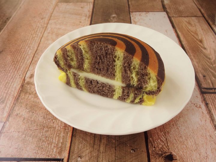 切ってみると断面がキレイな縞模様になっていて、ミルククリームとアカシアはちみつがサンドされていました。