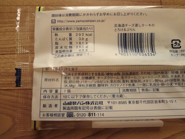原材料名栄養成分表示はこちら。エネルギーは1個293kcalです。