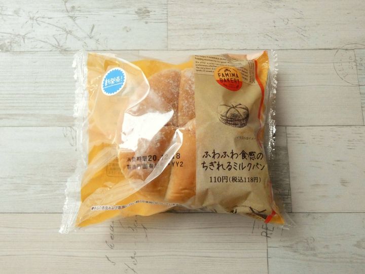 ファミマベーカリーの「ふわふわの食感ちぎれるミルクパン」は118円(税込み)。ずっしりと重みがあるのにこのお値段なのは嬉しいです。