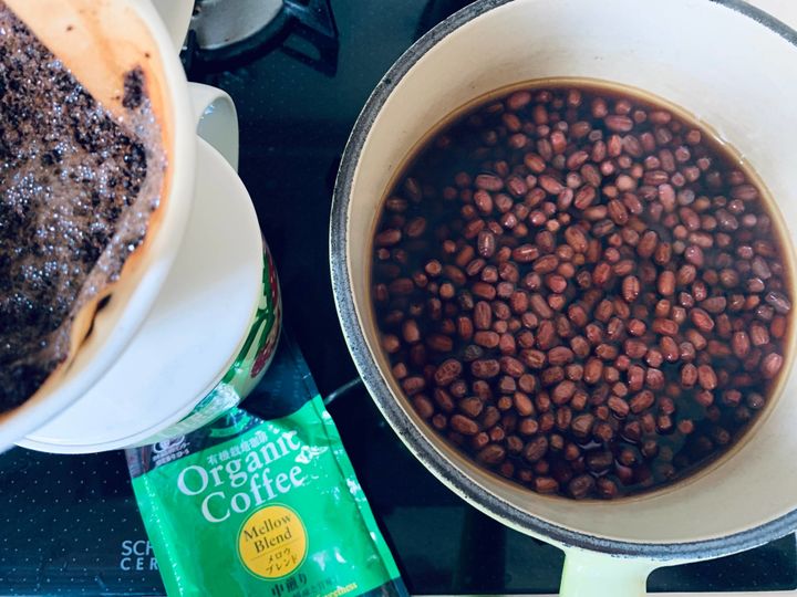 なぜでしょう?私はこの組み合わせが大好きで、コーヒーのほろ苦さと小豆の甘さ…