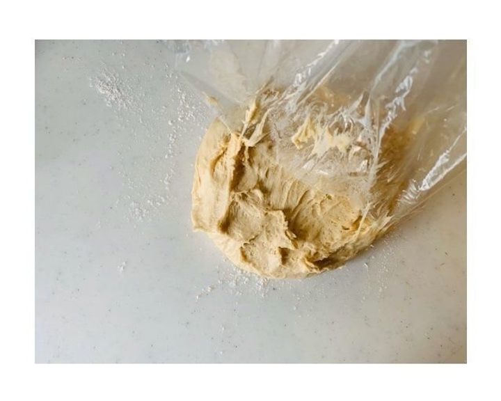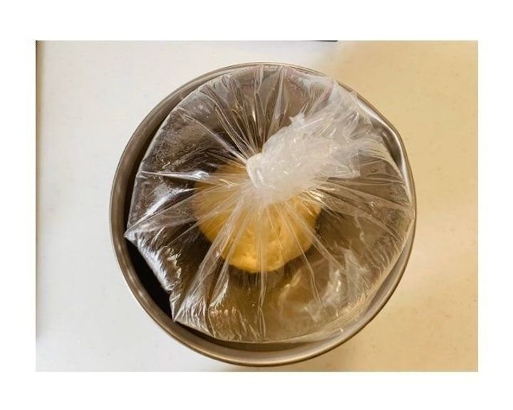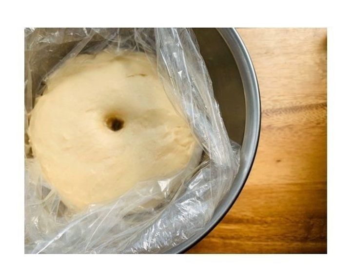 ・生地が乾かないように、大きなポリ袋をかぶせるか、切り開いたものでオーブン皿を包む。