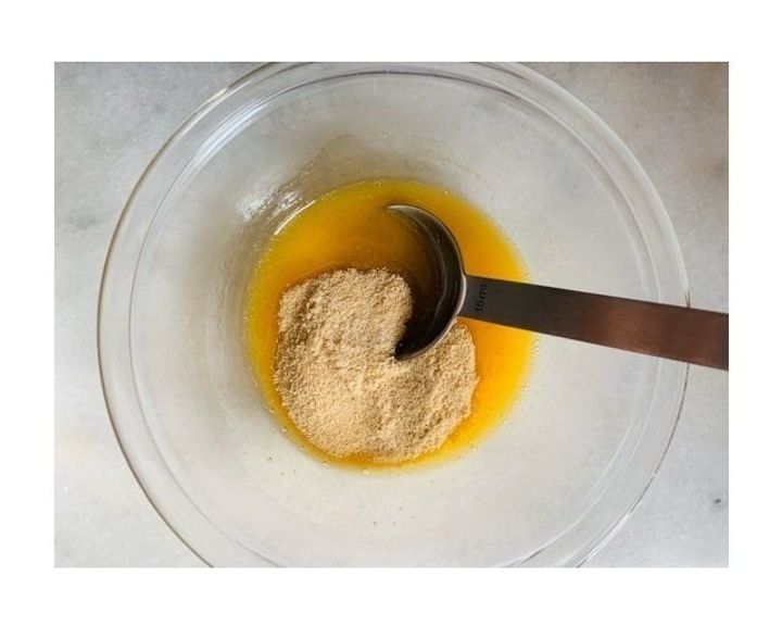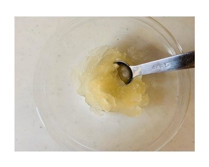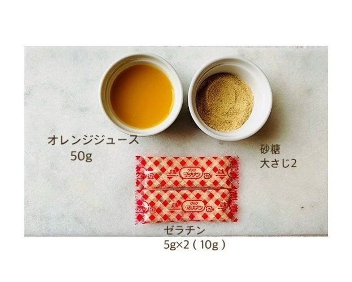 ①水にゼラチンを入れ全体が浸るように混ぜる。