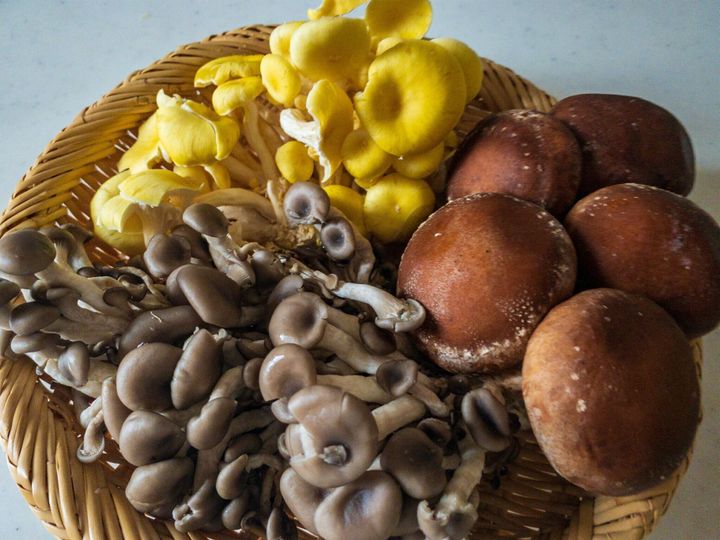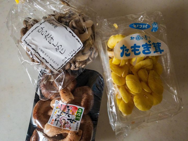 (しいたけ、しめじなど。写真はしいたけ、ひらたけしめじ、たもぎ茸)