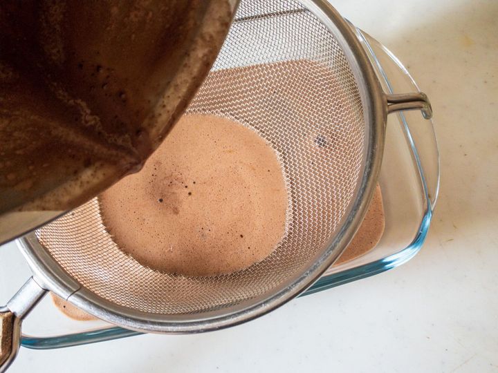 4.万能濾し器でこしながら型に注ぎます。