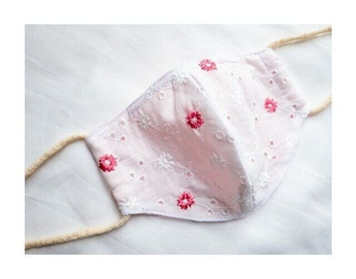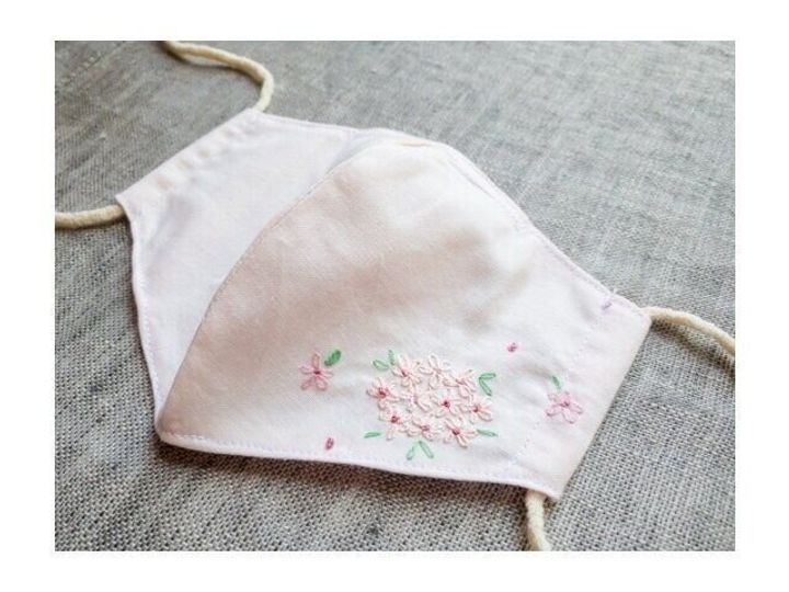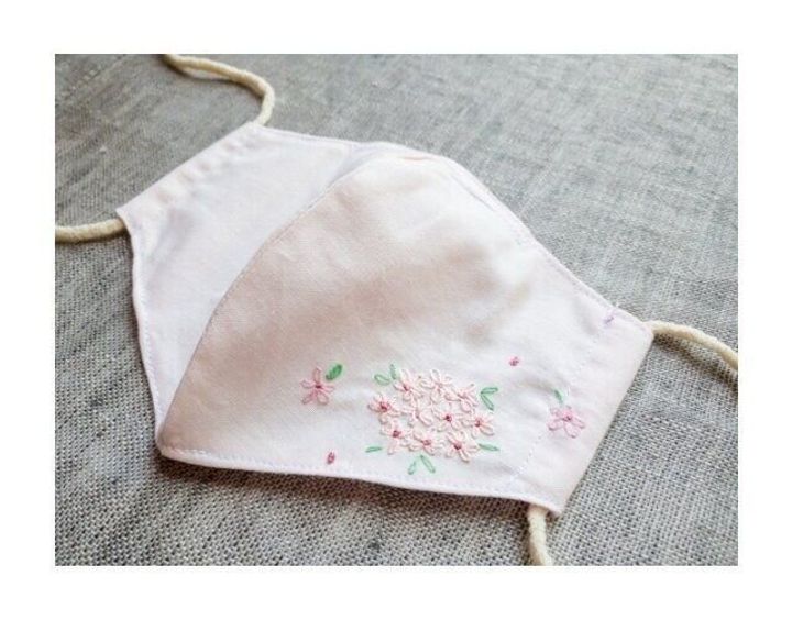 さらに軽い綿で目が詰まった生地でマスクもつくり、こちらも刺繍をしました。
