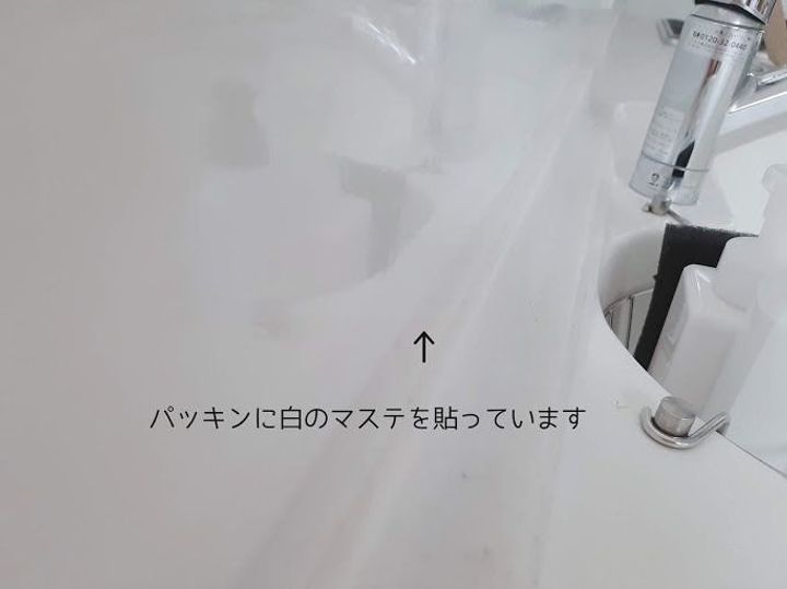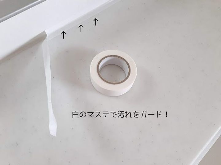 キッチンシンク周りのパッキンは毎日拭いていないと汚れが溜まったり、カビが生えやすいですよね。そこで使用するのは「白のマステ」