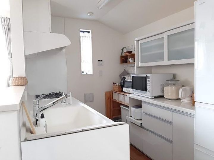 普段は食洗機を使用しているので大きな水切りかごは必要無くなりました。手洗いしたものは珪藻土マットを置いてそこに置いています。三角コーナーの代わりにエコホルダー、洗い桶の代わりに大き目の調理用のボールを代用する事でシンク周りをすっきりさせています。ものが置いてあるとどかして掃除するという「手間」がかかるのでどうしても億劫になりがち。清潔なキッチンを保つにはとにかく掃除の取りかかりやすさがポイント。