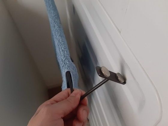セリアのアイアンバーに強力マグネットを接着して洗濯機の横に付けています。