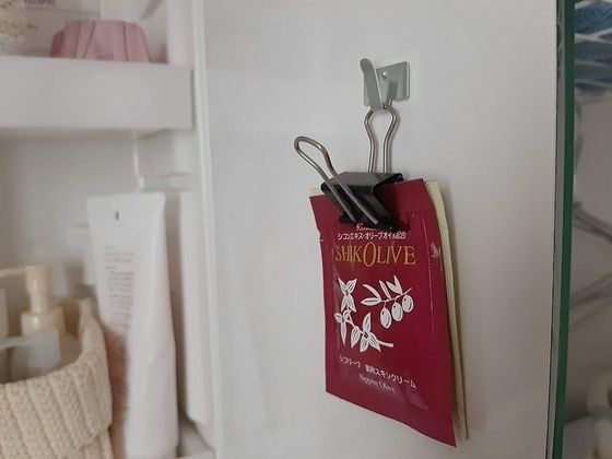 私は試供品はすぐに使うようにしているので、目に付きやすい場所を選んで取りつけています。