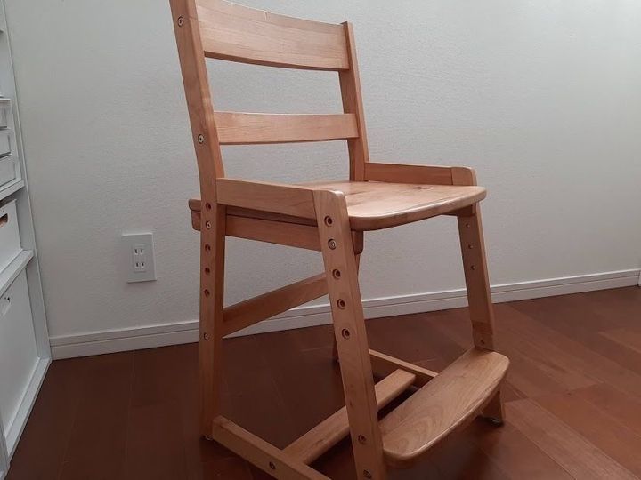 ダイニングテーブルの椅子だと子供の足がぶらぶらしてしまい集中する事が出来ません。座面の調節と足置きが必要です。我が家は身長の変化に合わせて座面と足置きが調整出来るタイプの椅子を購入しました。