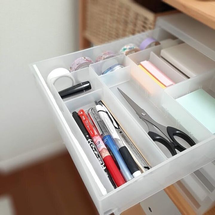 以前は大きな裁縫箱にたくさんのはぎれや道具を持っていました。今現在はダイソーの積み重ねボックス小・浅型2つ分だけ。使用頻度が低いので引出しの奥に収納しています。ずっと持っていたのに使用していなかったミシンは母に譲りました。私にとっては宝の持ち腐れだったミシン。持っているだけで活用出来ていないと見るたびにブルーになっていました。手放して気分も収納スペースもすっきりしましたよ。