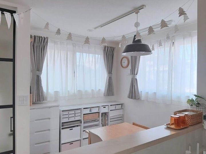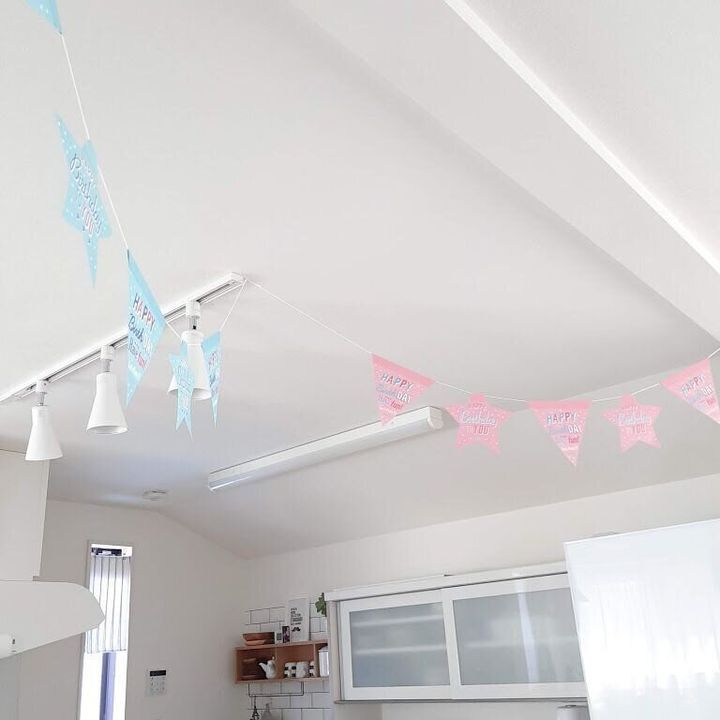 収納スペースを割くクリスマスツリーは手放しました。代わりに季節の飾りはコンパクトでシンプルなものを選んでいます。子どもは小さな飾りでも十分喜んでくれますよ。お勧めは天井のガーランド。お掃除の邪魔になる事なく雰囲気を楽しく変えることが出来ます。