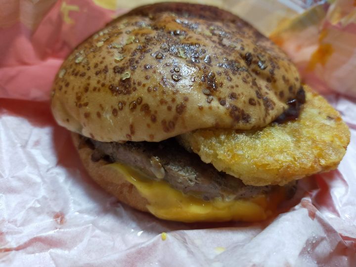 粉チーズと10種類以上のスパイスを効かせたバーベキューソースが肉厚ビーフパティに本当に合います。