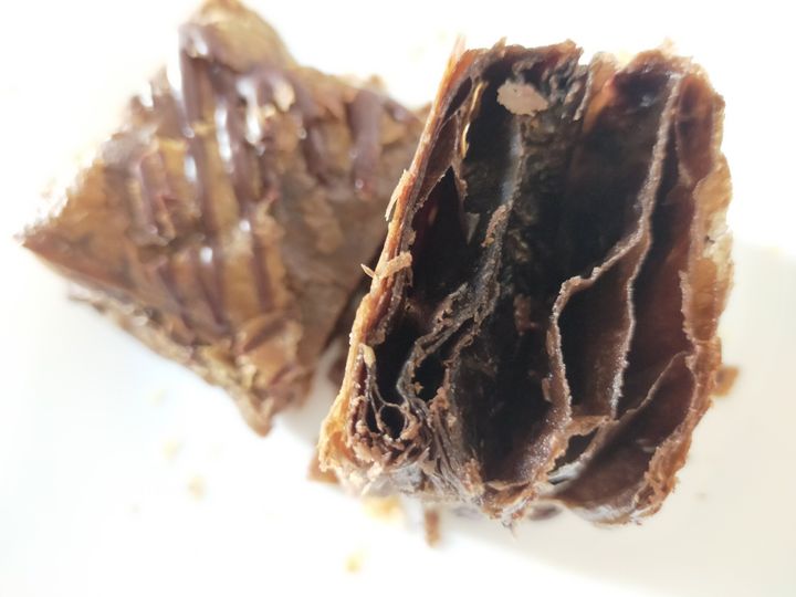 甘さが抑えられたビターチョコレートがココアパイ生地で包まれているのですが、温めたことでトロけたチョコがサクサクのパイ生地によく絡んで、口の中に美味しさが広がります。