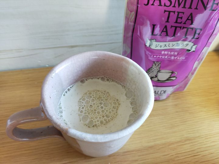 ジャスミン茶とミルクがこんなに合うなんて!香りの良いミルクジャスミンティーとなりました。豆乳との相性も抜群だそうなので、次はソイラテにしてみます!