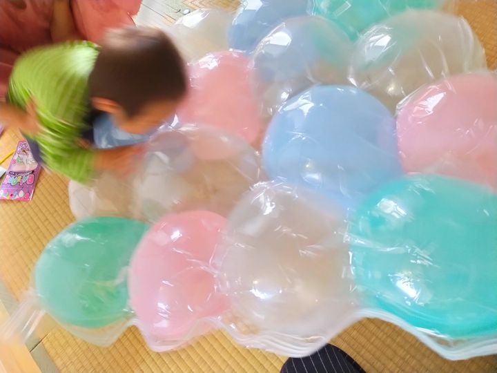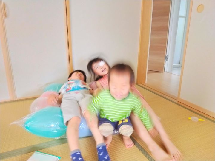 子ども達が乗っても、飛び込んでも大丈夫でした。