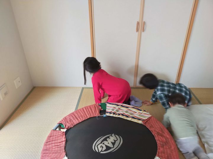 そこにトランポリンを置き、トランポリン周りで