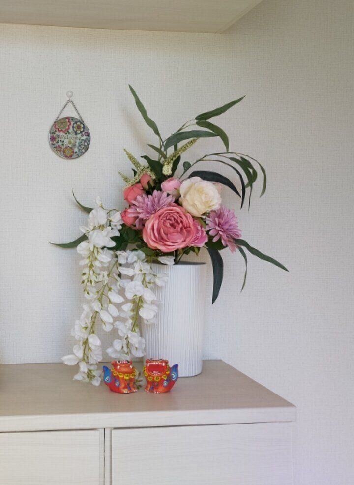 飽きずに1年くらい飾っていましたが、今回は何本か追加購入して、初夏仕様にしてみました。
