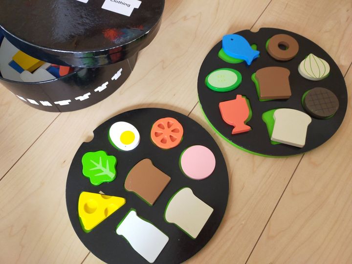 子どもだけで遊ぶには英語を使うことができず、普通にごっこあそびやブロックをしているので、やはり親が助言しないとなかなか英語で遊ぶって難しいですよね。