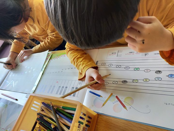 ピアノのワークブックをやると、自然と鉛筆の持ち方や平仮名などの確認ができます。