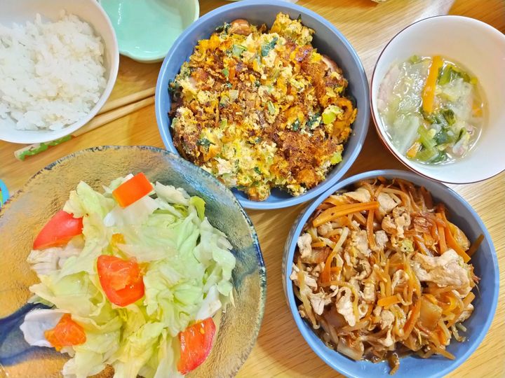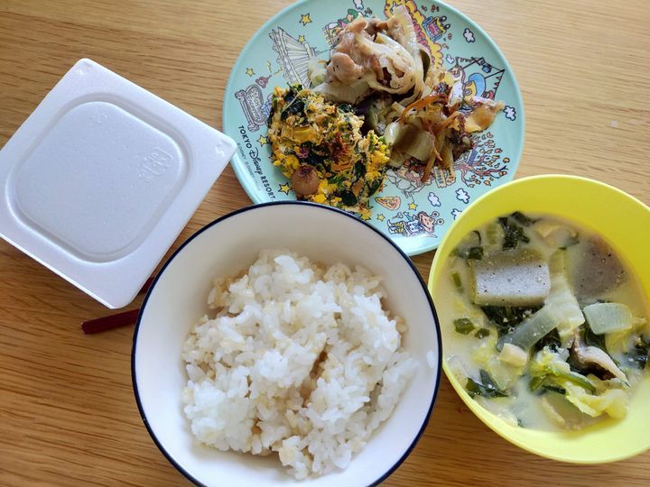 休日の朝食は手抜きと決めていて、パンやパンケーキ。おかずは少ないことが多いです。休日は楽させてもらい、平日その分、品数増やしています。