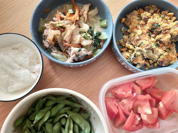 平日の朝に作れるだけ作って、日中は食べるものを考える手間をなくすことにより、買い物に行っても無駄買いを防ぎます。
