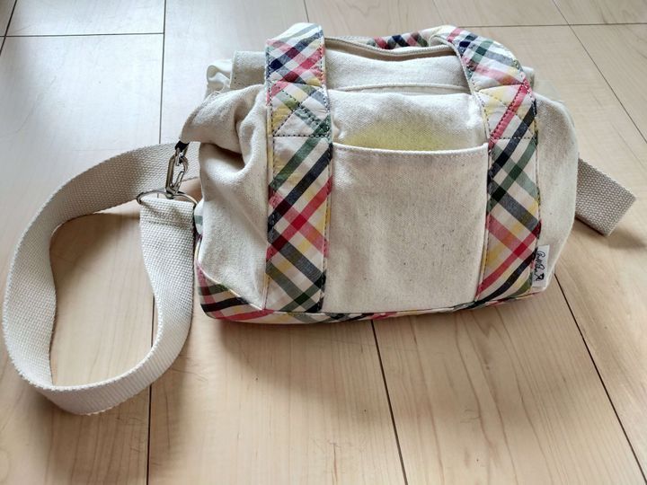 このカラフルなチェック柄に一目惚れし、セール中だったこともあり購入しました。幼稚園の送迎や買い物にちょうど良いサイズで重宝しています。