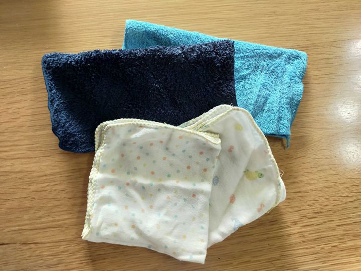 我が家も台布巾は古布。手拭きに使う布巾は、赤ちゃん用のガーゼです。もう使わなくなったものを再利用します。
