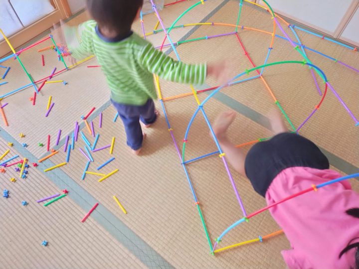 こちらのロンビーという知育玩具は、ストロー形式のものを繋げて様々なものが作れるようになっています。