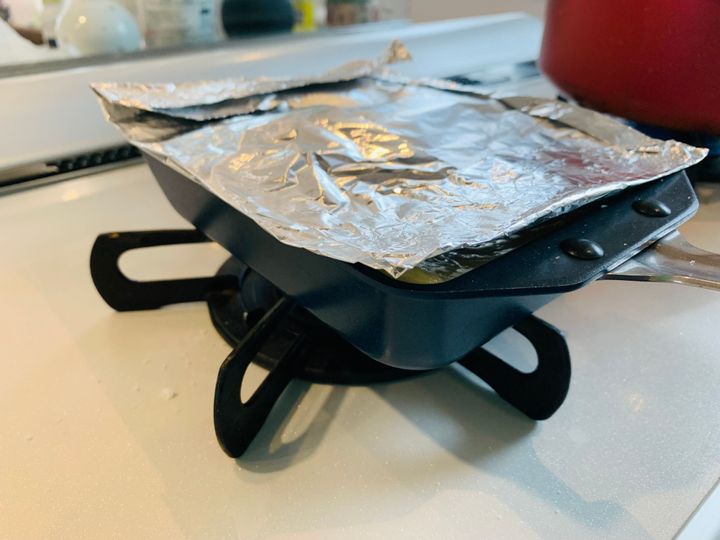 ホイルで蓋をのせ、弱火で15~20分焼きます。